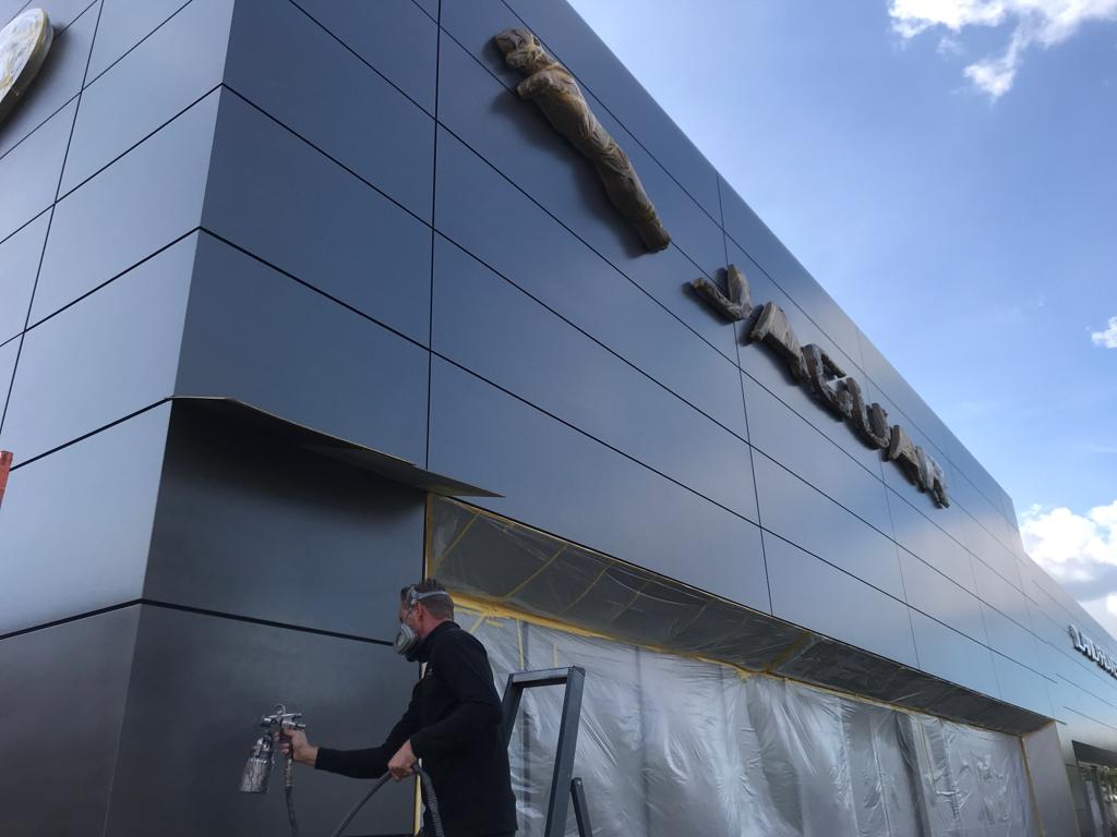 At Jaguar's business premises in Amsterdam, various scratches and dents had appeared in the facade over the years. A building with such a beautiful appearance, which also sells luxury cars, must of course retain its beautiful and chic appearance. Van Heemskerk was commissioned to touch up all these scratches and dents on location! Our experts naturally did not turn their hands around for that and the result is a facade that is again in 100% original condition without any color difference!