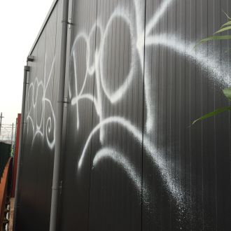 Van Heemskerk verwijdert graffiti op professionele wijze van voorgelakt staal. We kunnen bovendien een nieuwe laklaag in dezelfde kleur aanbrengen. Deze hoogwaardige lakken worden op locatie bijgetint naar exact de juiste kleur. Zo brengen we uw gevel weer in de originele staat terug.